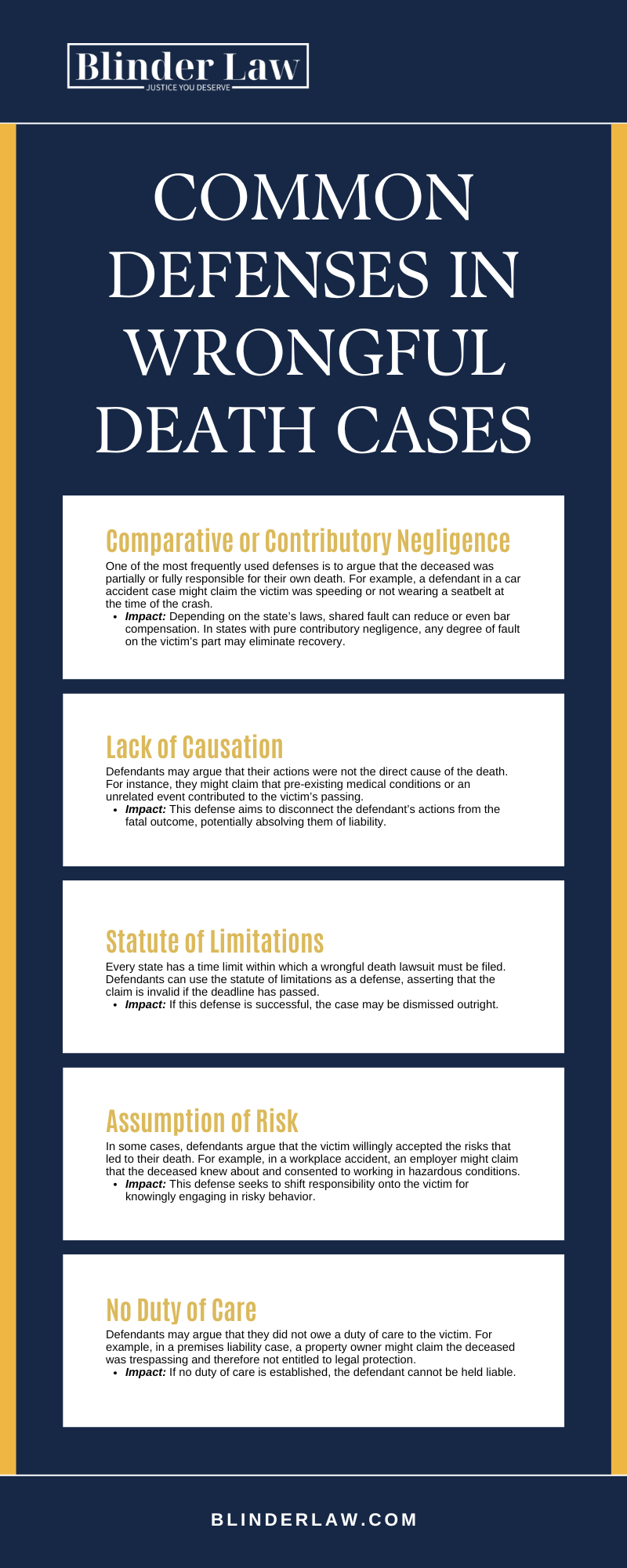 Wrongful death cases often involve aggressive defenses from those seeking to avoid accountability. However, with the expertise of a New Brunswick wrongful death lawyer from Blinder Law, families can overcome these challenges. By countering defenses with compelling evidence and strategic arguments, lawyers fight to secure justice and compensation for grieving loved ones.